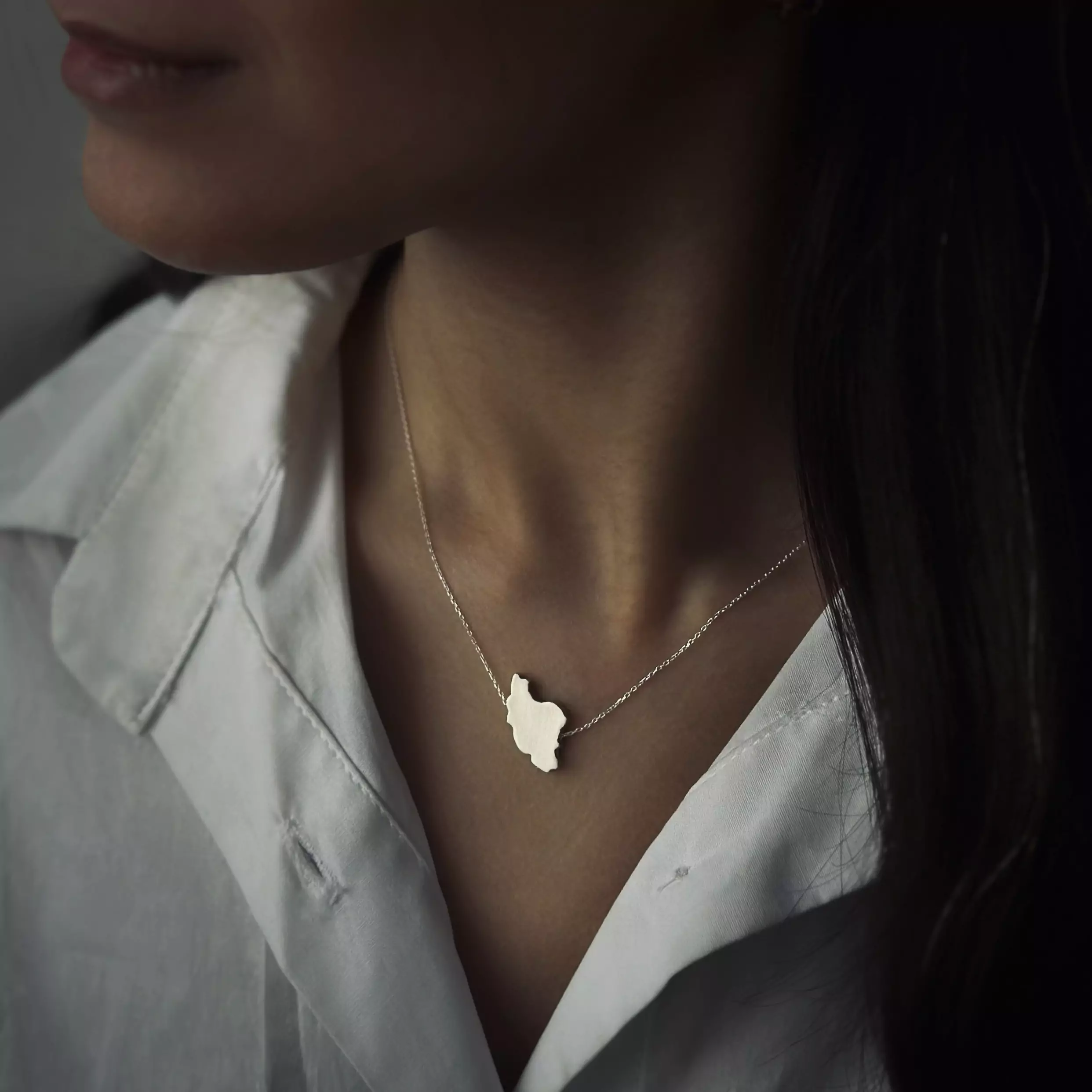 نماد وطن: طرح نقشه ایران روی گردنبند، یادآور ریشهها، خاطرات و حس تعلق است.